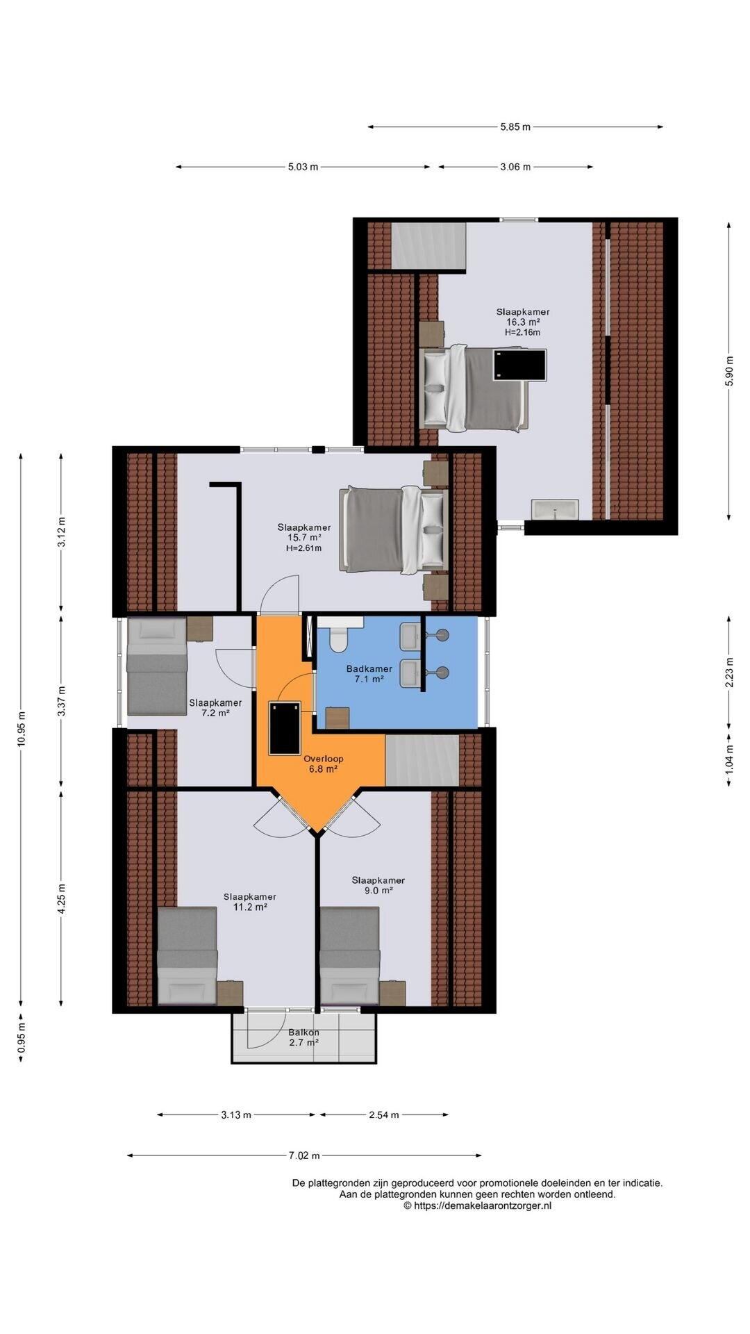 Vier slaapkamers (ca. 7m2, 9m2, 11m2 en 16m2) waarvan de grootste slaapkamer een airconditioner en inloopkast heeft;