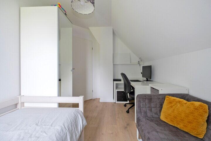 De woning is gebouwd rond 1988 en in 2021 fors uitgebreid: de voormalige garage is toen omgebouwd tot volwaardige woonruimte met drie extra slaapkamers, badkamer en een praktische bijkeuken. Hierdoor beschikt de woning nu over maar liefst 7 slaapkamers – ideaal voor een groot gezin, werken aan huis of het ontvangen van logés.